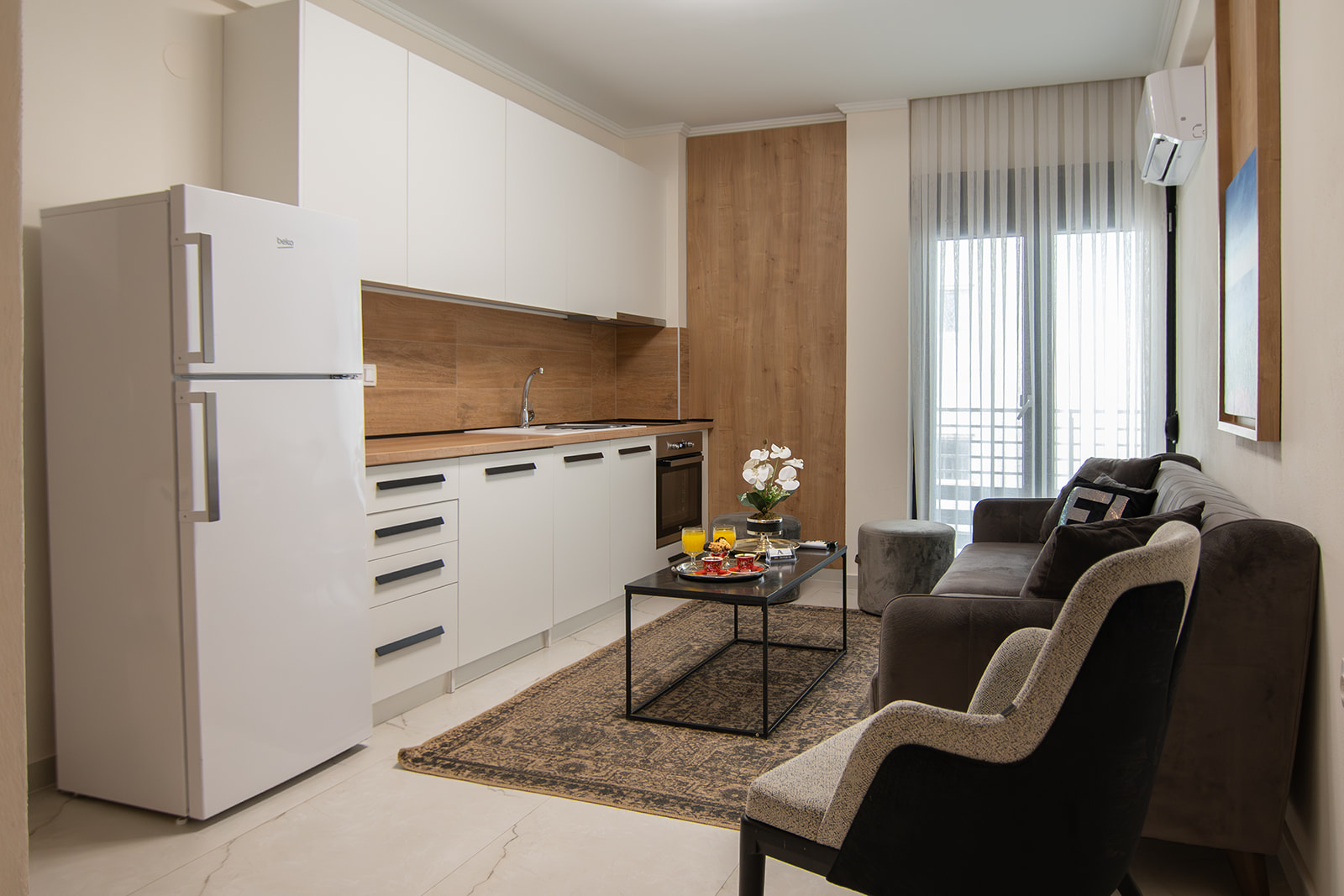 Τα διαμερίσματα έχουν σχεδιαστεί με φιλοσοφία boutique residence, προσφέροντας σύγχρονο design, άνετους χώρους και υψηλό επίπεδο φιλοξενίας. Κάθε λεπτομέρεια υπηρετεί την αίσθηση ενός σύγχρονου, λειτουργικού και κομψού χώρου, ιδανικού τόσο για σύντομες αποδράσεις όσο και για επαγγελματική διαμονή.