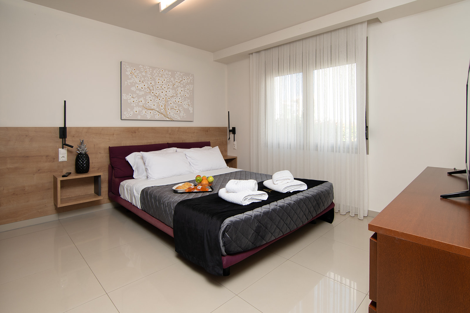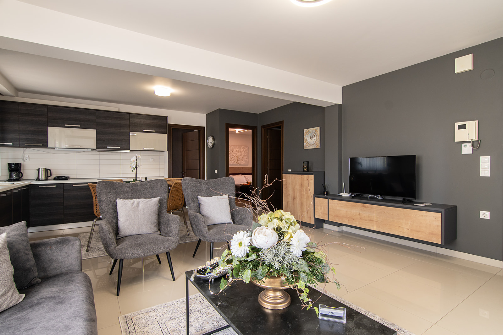 Τα διαμερίσματα έχουν σχεδιαστεί με φιλοσοφία boutique residence, δίνοντας έμφαση στη λειτουργικότητα, τον σύγχρονο σχεδιασμό και την ποιότητα των υλικών. Φωτεινοί χώροι, καθαρές γραμμές και προσεγμένες λεπτομέρειες δημιουργούν ένα περιβάλλον που θυμίζει σύγχρονη κατοικία και όχι απλώς κατάλυμα διακοπών.